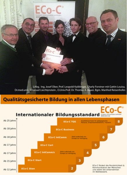 Mit dem internationalen Bildungsstandard werden Kenntnisse, Fertigkeiten und Fähigkeiten sichtbar gemacht. Bildung in allen Lebensphasen ist das Credo der Zukunft. Mit dem aufbauenden internationalen Bildungsstandard ECo-C eignet man sich qualitätsgesichert bzw. lernergebnisorientiert Persönlichkeits-/ Kommunikationskompetenzen an. Als Nachweis erhält man das internationale ECo-C Zertifikat. Mehr als 100.000 Absolventen freuen sich bereits, dass sie dieses begehrte internationale Zertifikat besitzen.